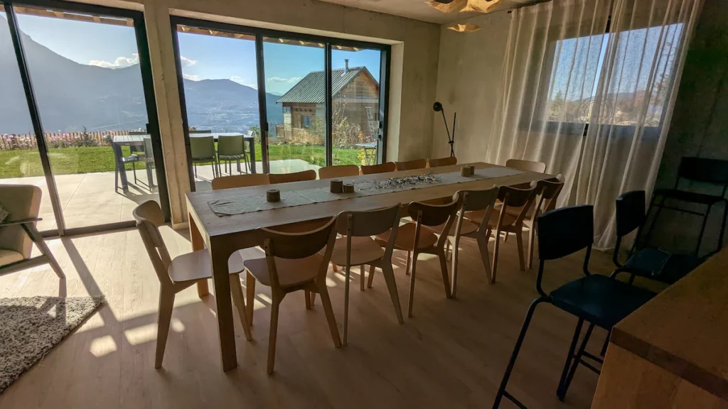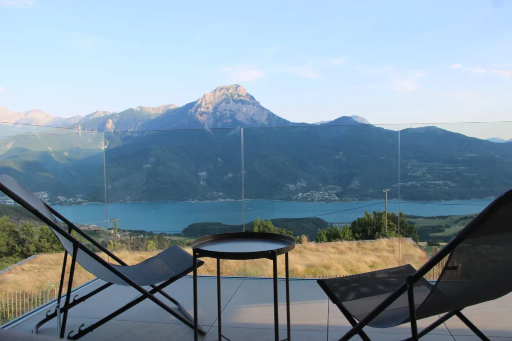 Installé dans un chalet contemporain, ce logement de 7 chambres, avec chacune sa SDD et WC attenants, ravira les grandes familles ou groupe d’amis. A 10 min du lac de Serre-Ponçon : randonnées en montagne et sports d’eau en été, skis et raquettes en hiver.