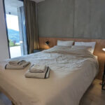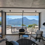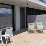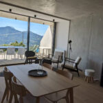 – d’un living avec cuisine équipée, disposant d’une large baie vitrée donnant sur une terrasse privative plein sud, avec vue sur les montagnes et le lac ;
