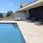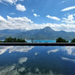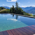 – de mi juin à mi septembre, d’un accès direct à la piscine chauffée (partagée avec la maison) avec vue sur le lac (bassin de nage : sans sel, ni chlore, ni autre produit chimique).